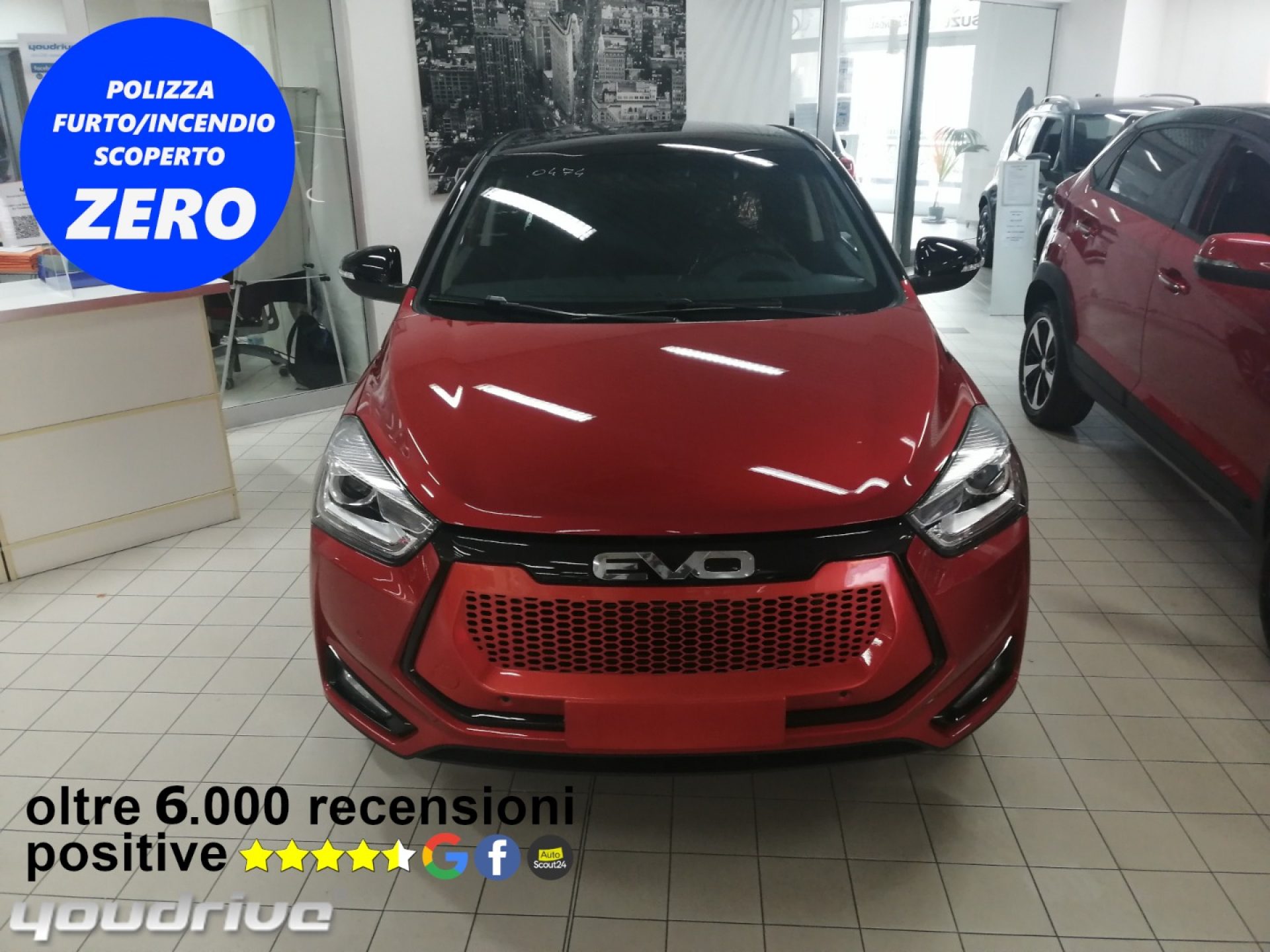 N.B tutti i dati pubblicati, fotografie comprese, relativi alla descrizione dei veicoli sono stati compilati con cura, tuttavia, potrebbero contenere errori e omissioni. Si declina quindi ogni responsabilità se le informazioni consultate non corrispondono alle caratteristiche del mezzo. La correttezza delle informazioni può essere verificata in sede. Tutti i marchi citati e i loghi riprodotti appartengono ai legittimi proprietari. Detti marchi sono riportati solo per identificare il prodotto e a scopo informativo. La Youdrive srl dichiara di essere concessionaria Evo Italia e rivenditore degli altri marchi riportati e di non vantare alcun diritto sui marchi di non sua proprieta'. (cod promo F.YD)